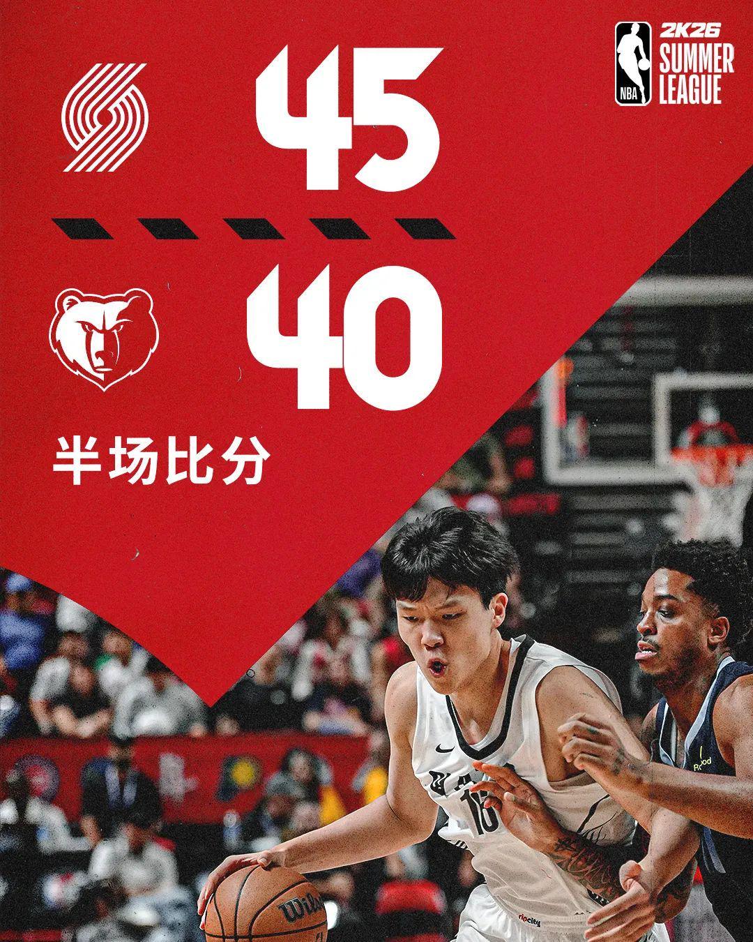 开拓者VS灰熊,杨瀚森上半场打了约14分钟,得到8分2板2助4失误2犯规。