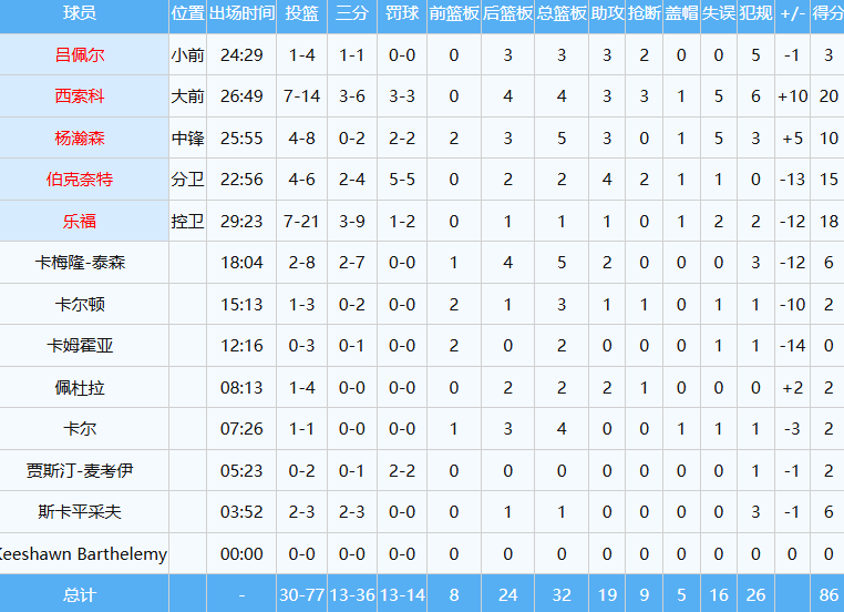 此役杨瀚森继续担任首发中锋,出战约26分钟,投篮8中4,其中三分球2中0,罚球2中2贡献10分5板(2前场板)3助1帽全面数据,美中不足的是出现5次失误,正负值+5全队第二高。